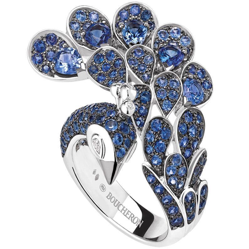 Каблучка Boucheron Animals Hera, біле золото, сапфіри, діаманти.
