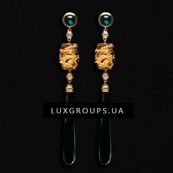 Сережки Carrera y Carrera Circulos De Fuego 18K Yellow Gold Earrings with Onyx and Blue Topaz