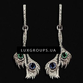 Сережки Carrera y Carrera Peacock 18K White Gold Carnaval Earrings with Green Tourmaline Iolite and Diamonds