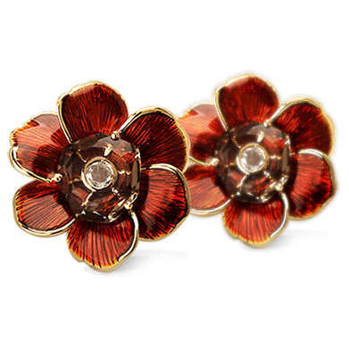 Сережки з жовтого золота з димчастим кварцем, емаллю та діамантами.