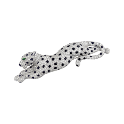 Опис Брошка у формі пантери з платини 950 проби, діаманти, смарагди (очі), онікс (ніс)