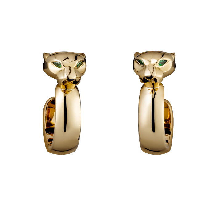 Опис Сережки Panth?re de Cartier, жовте золото 18 карат, чорний лак, гранати-цаворити