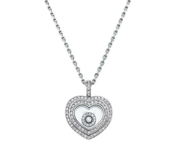 Намисто з підвіскою у формі серця з діамантами й серцем Chopard із 18-каратного білого золота
