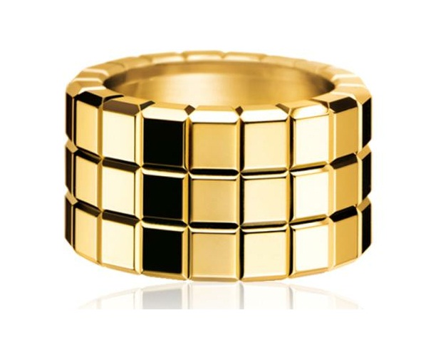 Каблучка Chopard Ice Cube в 3 ряди з жовтого золота 18 карат