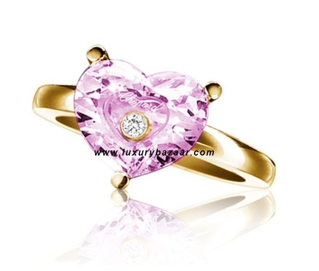 Каблучка Chopard So Happy Pink Stone Heart Floating Diamond Yellow Gold