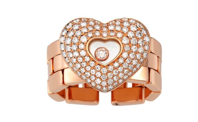 Каблучка Chopard Happy Diamonds Hearts з рожевого золота 18 карат у 4 ряди з діамантами