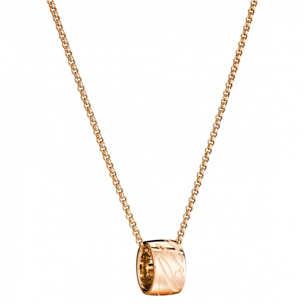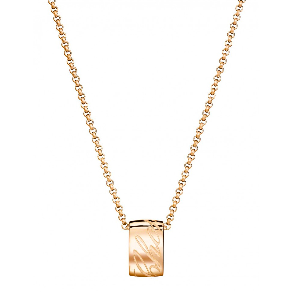 Опис Велика підвіска з рожевого золота 750 проби прикрашена гравіюванням з каліграфічним логотипом Chopard.