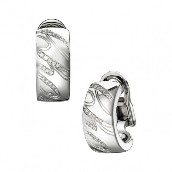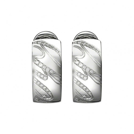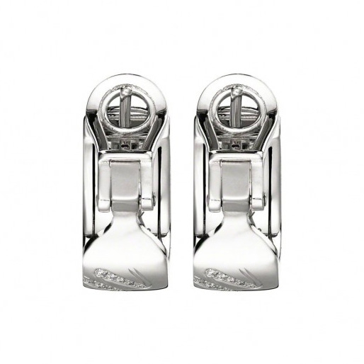 Сережки Chopard Chopardissimo ref: 837031-1002 із білого золота 750 проби з діамантами (0,16 карат) прикрашено гравіюванням з каліграфічно виписаним логотипом Chopard.
