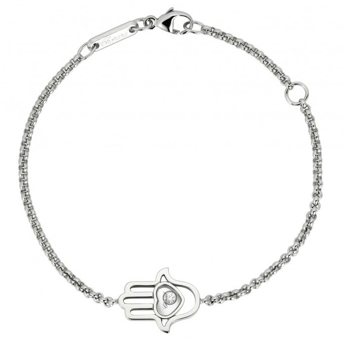 Браслет Chopard Happy Diamonds Icons ref: 857864-1001 з білого золота 750 проби з діамантом (0,05 карат), що вільно ковзає між сапфіровим склом.