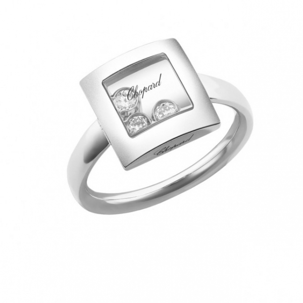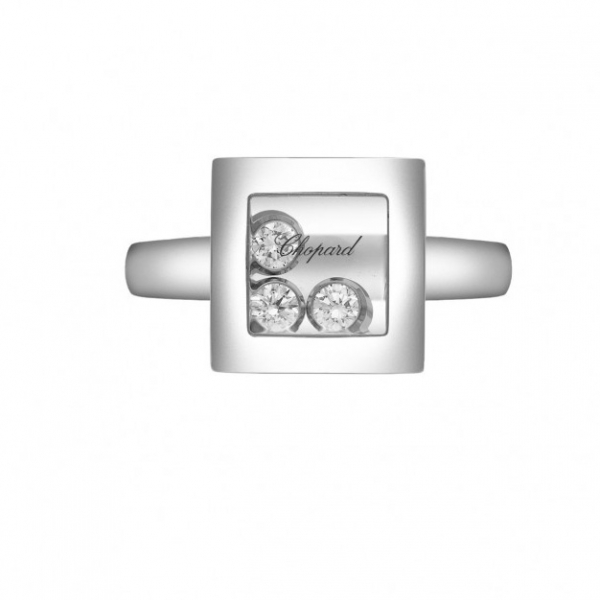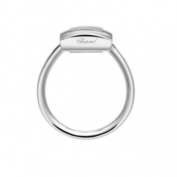 Кільце Chopard Happy Diamonds Icons ref: 829224-1010 з білого золота 750 проби з діамантами (0,13 карат), які вільно ковзають між сапфіровим склом.