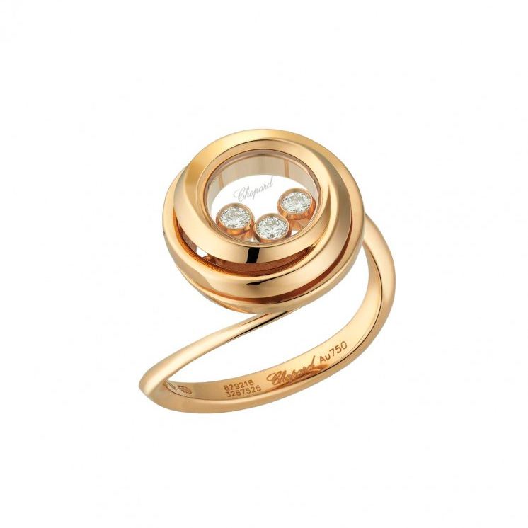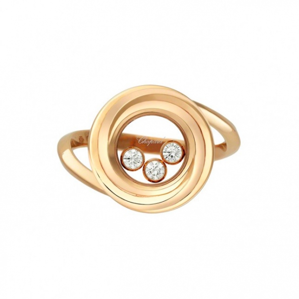 Кільце Chopard Happy Emotion ref: 829216-5010 з рожевого золота 750 проби з діамантами (0,15 карат), які вільно ковзають між сапфіровим склом.