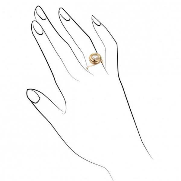 Опис Кільце з рожевого золота 750 проби з діамантами (0,15 карат), які вільно ковзають між сапфіровим склом.