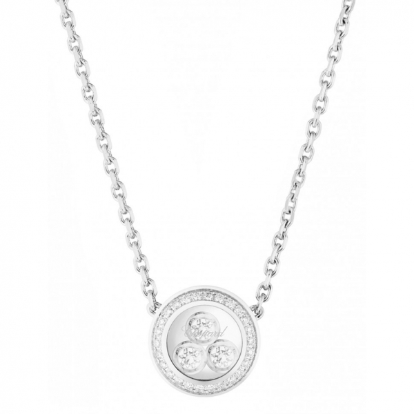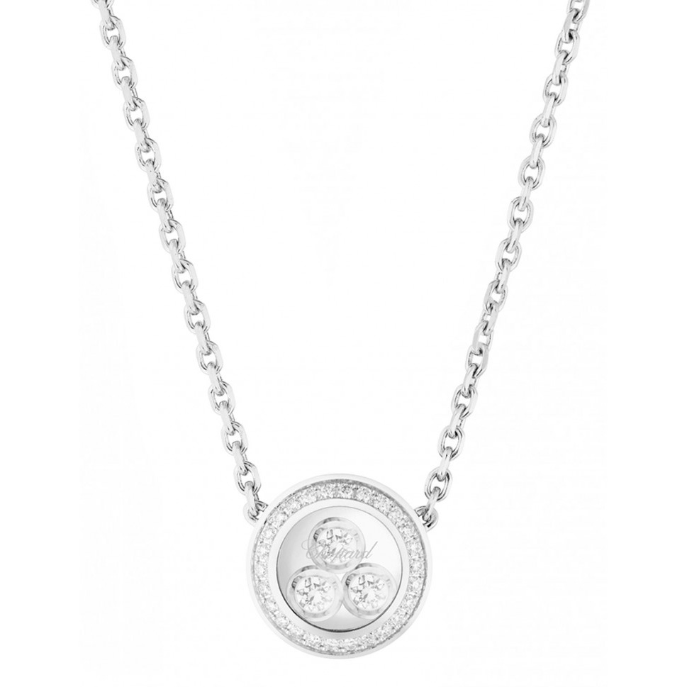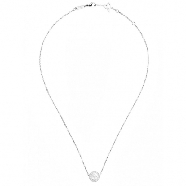 Кольє Chopard Happy Diamonds Icons ref: 819562-1002 з білого золота 750 проби з діамантами (0,16 карат), діаманти плаваючі вільно ковзають між двома сапфіровими склом.