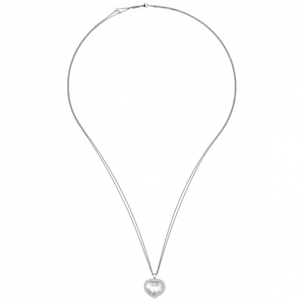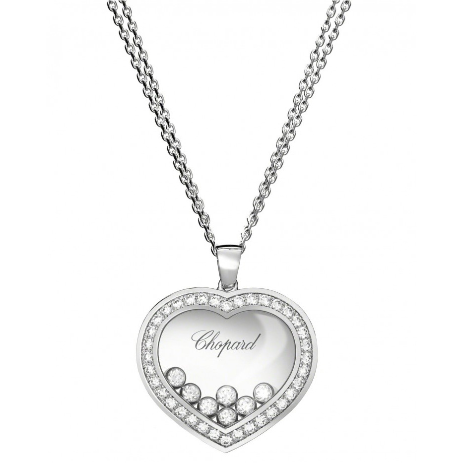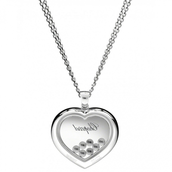 Підвіска Chopard Happy Diamonds Icons ref: 799202-1003 з білого золота 750 проби з діамантами (0,89 карат), діаманти плаваючі вільно ковзають між двома сапфіровими склом.