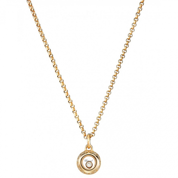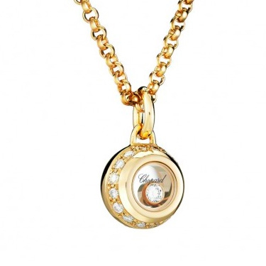 Підвіска Chopard Happy Diamonds Miss Happy ref: 799012-0001 з жовтого золота 750 проби з діамантами (0,14 карат), діамант, що плаває, вільно ковзає між двома сапфіровими склом.