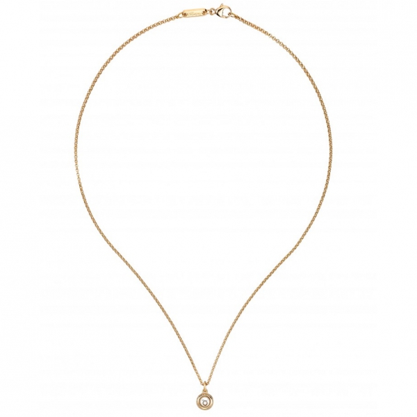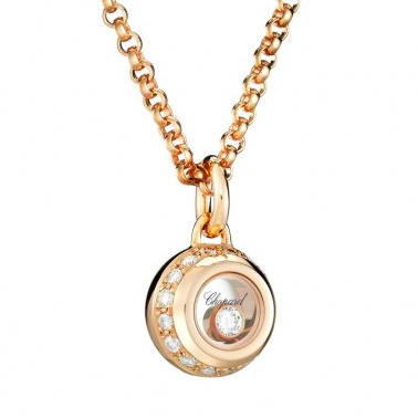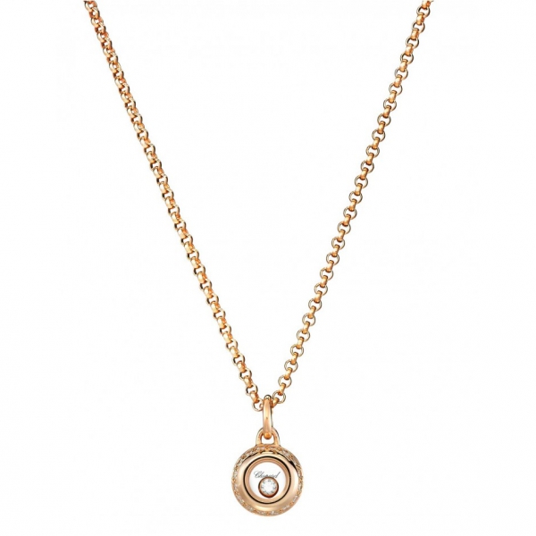 Підвіска Chopard Happy Diamonds Miss Happy ref: 799012-5001 з рожевого золота 750 проби з діамантами (0,14 карат), діамант, що плаває, вільно ковзає між двома сапфіровими склом.