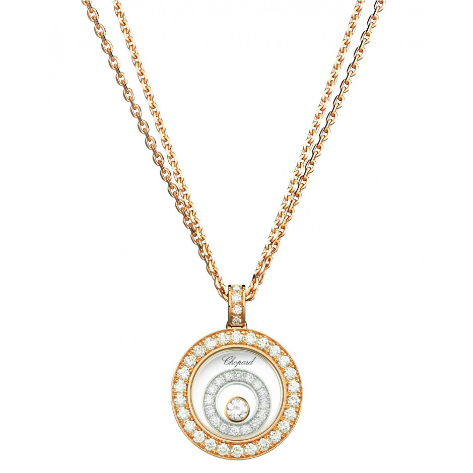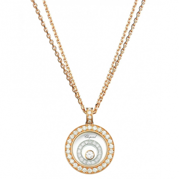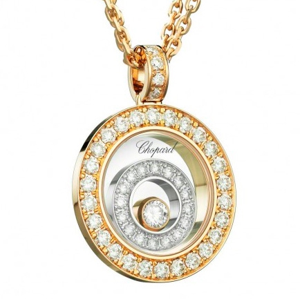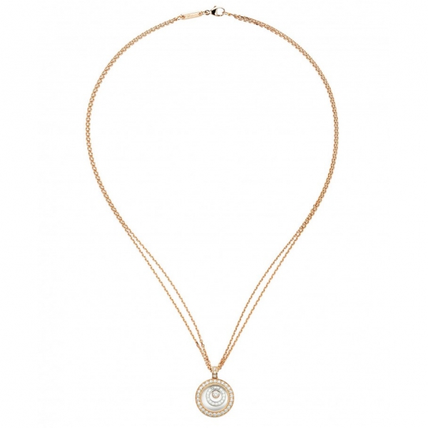 Підвіска Chopard Happy Spirit ref: 795422-9002 з білого та рожевого золота 750 проби з діамантами (0,72 карат), діаманти плаваючі вільно ковзають між двома сапфіровими склом.