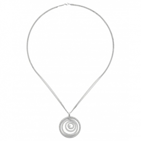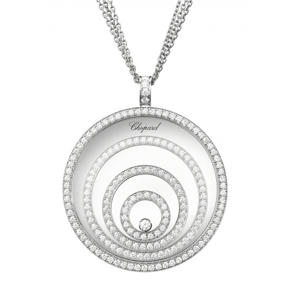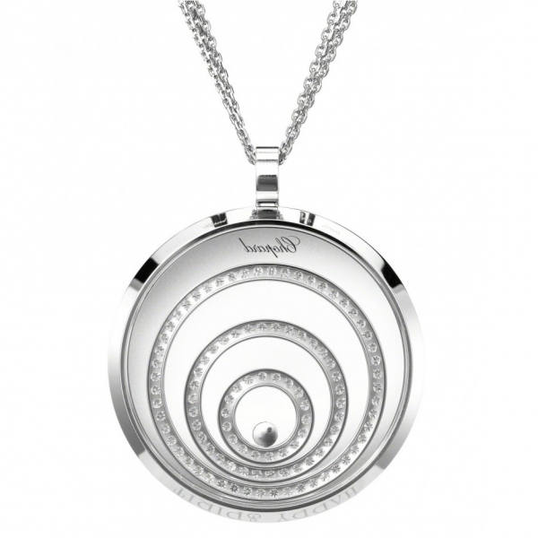 Підвіска Chopard Happy Spirit ref: 795430-1001 з білого золота 750 проби з діамантами (3,17 карат), діаманти, що плавають, вільно ковзають між двома сапфіровими склом.