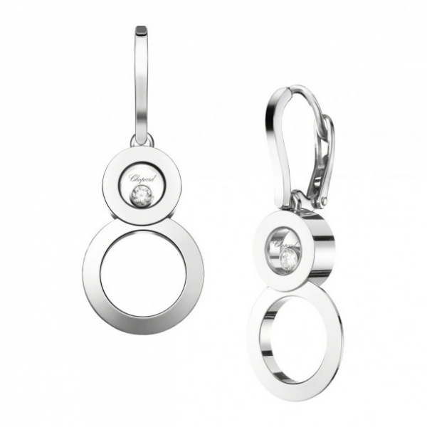 Сережки Chopard Happy 8 ref: 839209-1001 з білого золота 750 проби з діамантами (0,10 карат), діаманти плаваючі вільно ковзають між сапфіровим склом.