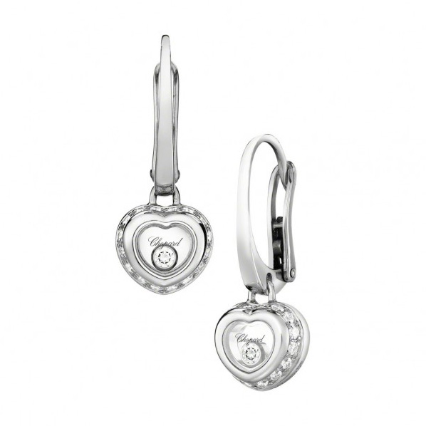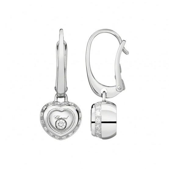 Сережки Chopard Miss Happy ref: 839009-1001 з білого золота 750 проби з діамантами (0,29 карат), діаманти плаваючі вільно ковзають між сапфіровим склом.