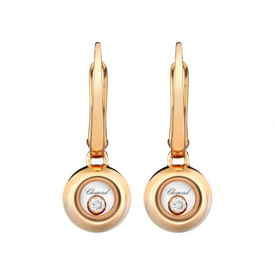 Сережки Chopard Miss Happy ref: 839011-5001 з рожевого золота 750 проби з діамантами (0,06 карат), діаманти, що плавають, вільно ковзають між сапфіровим склом.