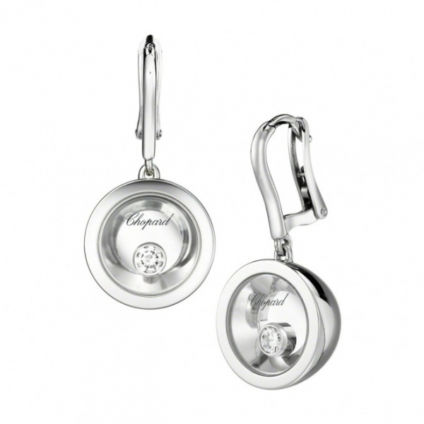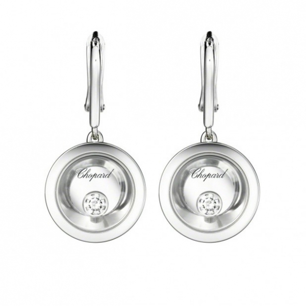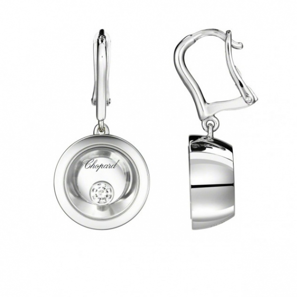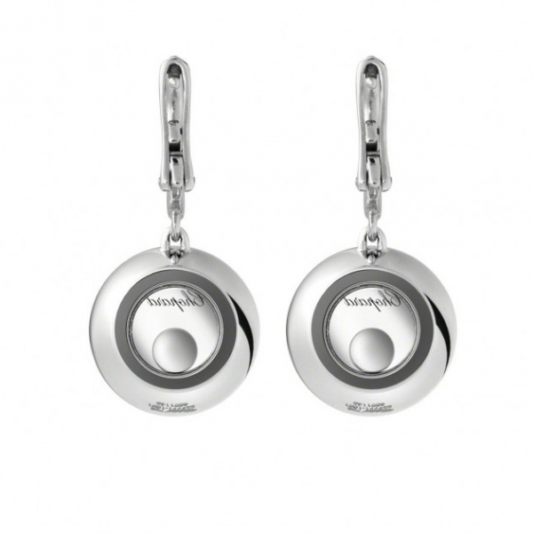 Сережки Chopard Very ref: 837771-1001 з білого золота 750 проби з діамантами (0,20 карат), діаманти плаваючі вільно ковзають між сапфіровим склом.