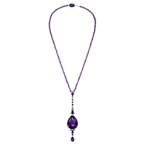 Опис Кольє з білого золота 750 проби з діамантами та коштовним камінням Обмежена серія