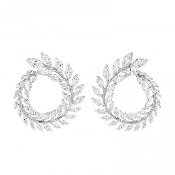 Ажурні сережки з флористичним візерунком виготовлені з білого золота 750 проби сертифікації Fairmined, що добувається старими артелями в Південній Америці. Вони прикрашені 72 діамантами ограновування «маркіз».