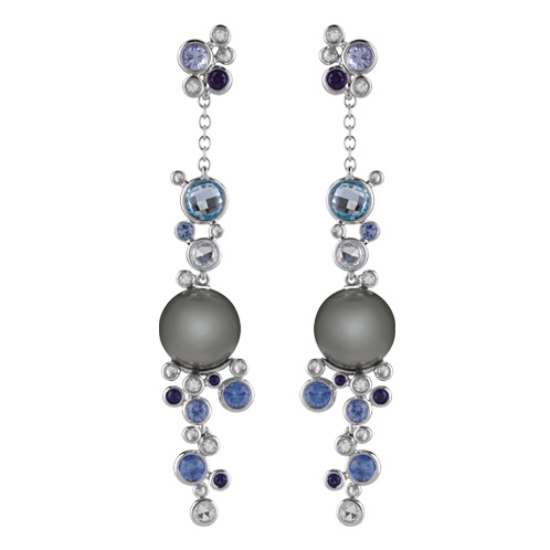 Сережки Damiani Bubbles ref: 20055193 із білого золота з перлиною Таїті, білими діамантами (0,75 кт), сапфірами та топазами (1,80 кт).