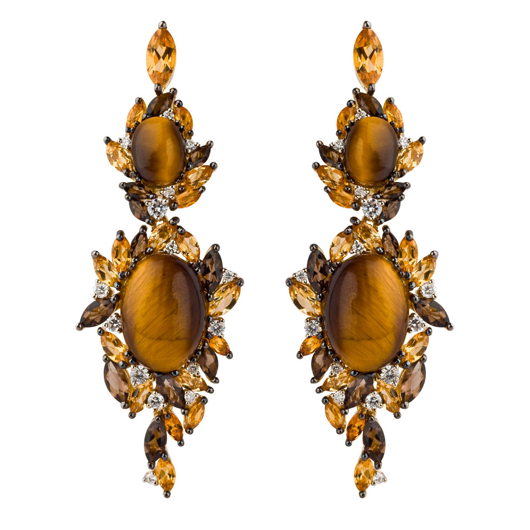 Сережки Damiani Masterpieces Dorotea з жовтого золота з діамантами (ct 0,78) та коштовним камінням.