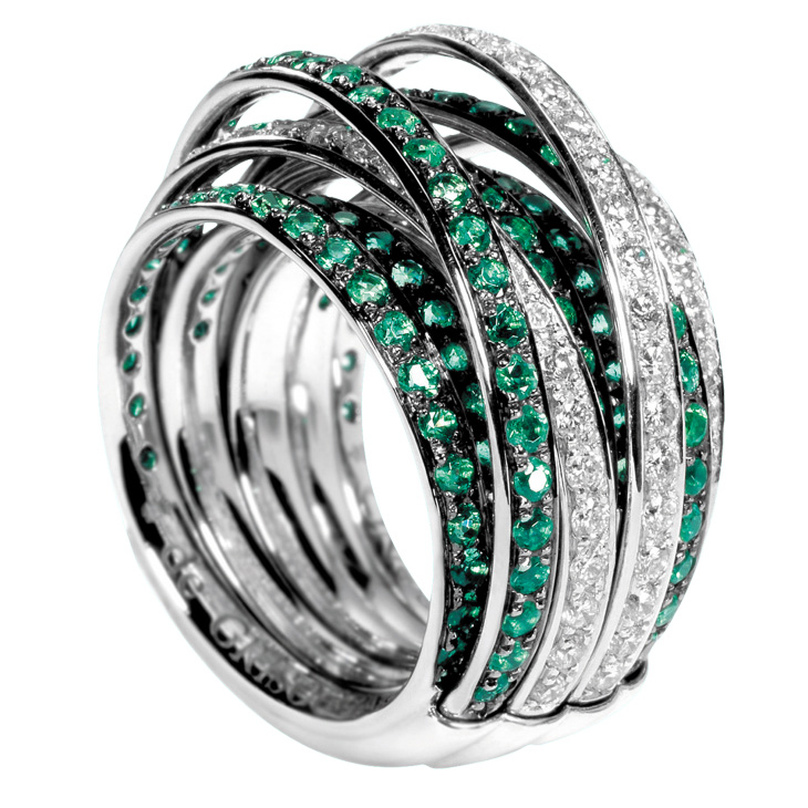 Кільце de Grisogono, колекція Allegra. Каблучка з білого золота зі смарагдами та білими діамантами.