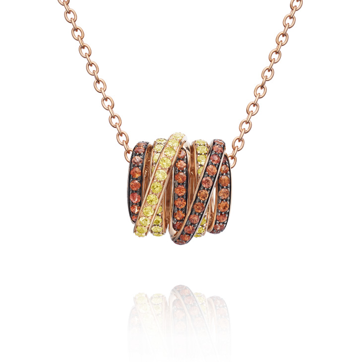 Підвіска de Grisogono, колекція Allegra. Підвіска з рожевого золота з оранжевими та жовтими сапфірами. Підвіска на ланцюжку із рожевого золота.