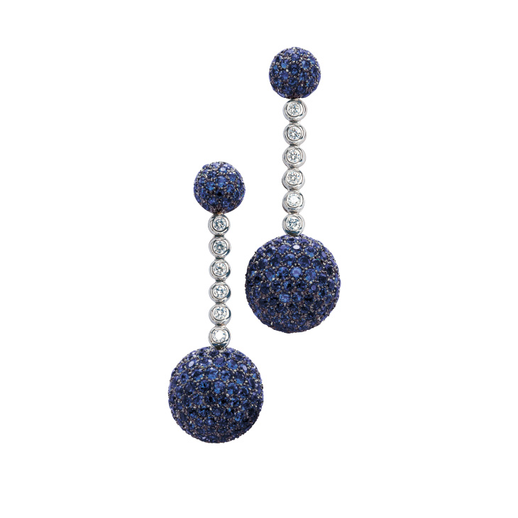 Сережки de Grisogono Boule, біле золото, діаманти, сапфіри