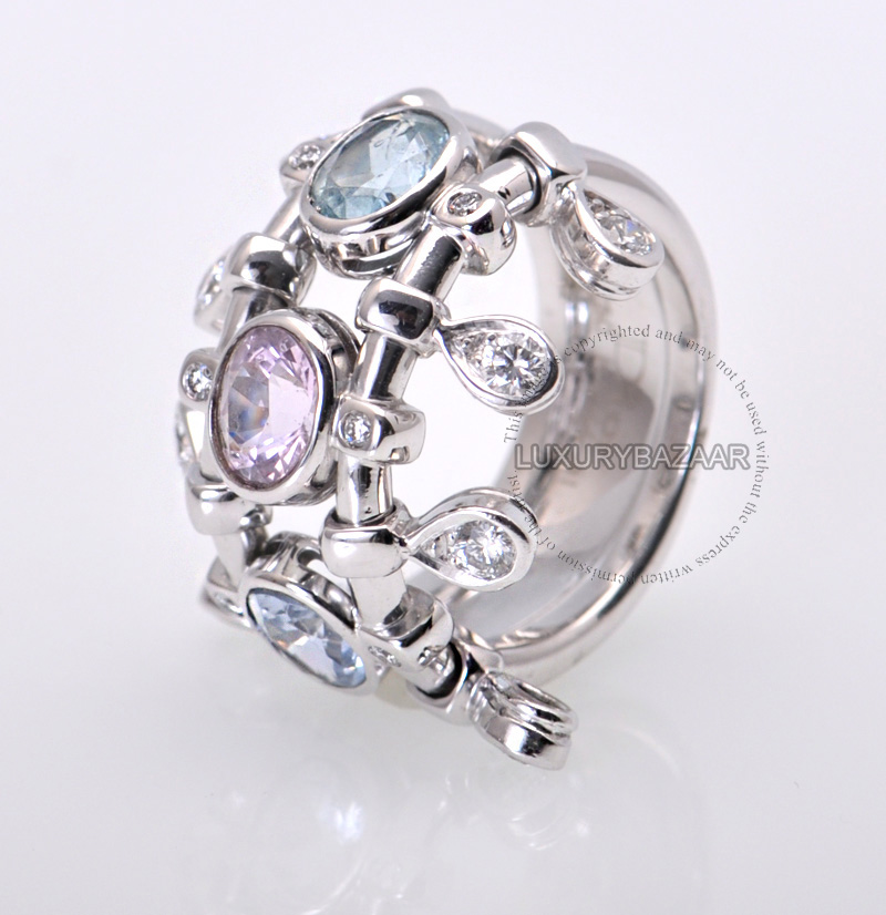 Dior 18K White Gold Diamond Aquamarine Коктейль Ring