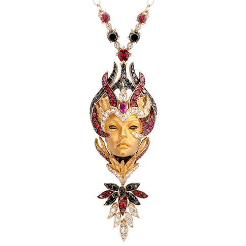 Опис Підвіска Magerit Hechizo Odile, жовте золото, білі та чорні діаманти 0,70 карат, рубіни