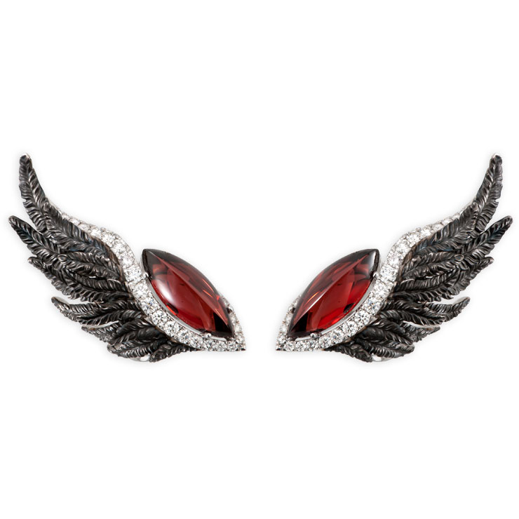Опис Сережки Magerit Hechizo Armonia, біле золото, вкрите родієм, діаманти 0,73 карат, гранат