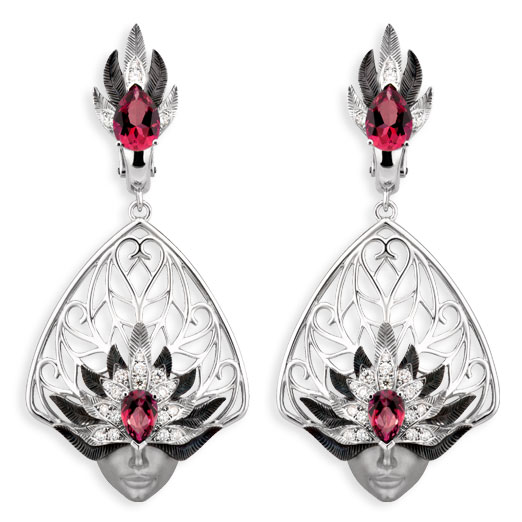 Сережки Magerit Hechizo Misterio, біле золото, діаманти, червоні топази