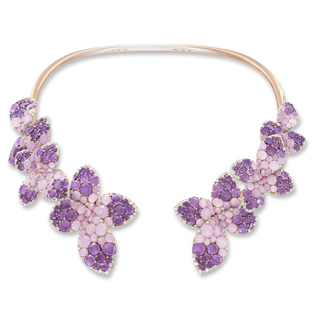 Кольє Pasquale Bruni із колекції Secret Gardens Haute Couture. Кольє із рожевого золота з білими діамантами, фіолетовим нефритом та аметистами.