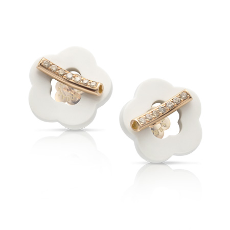 Сережки Pasquale Bruni з колекції Make Love. Сережки-пусети з рожевого золота з білими діамантами та коголонгом.