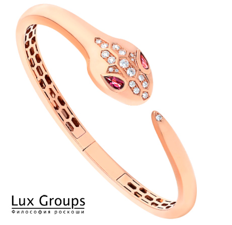 Опис Браслет Bvlgari Serpenti, розове золото, діаманті, рубіні.