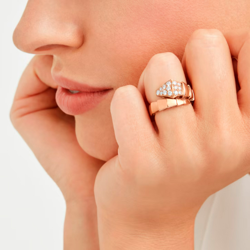 Опис Каблучка Bvlgari Serpenti Viper, розове золото, діаманті