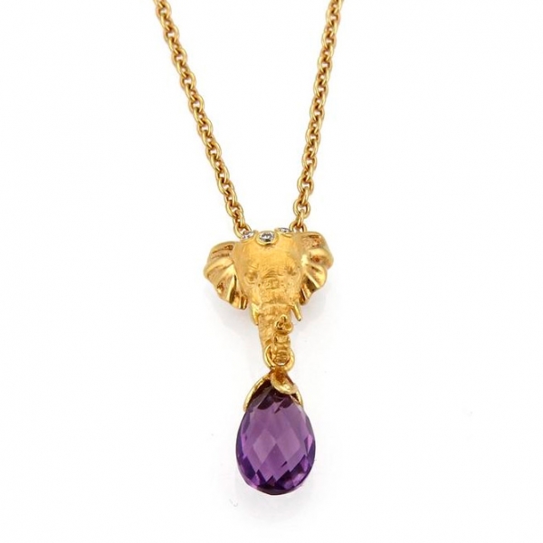 Опис Carrera y Carrera Elephant pendant, yellow gold, amethyst, diamonds