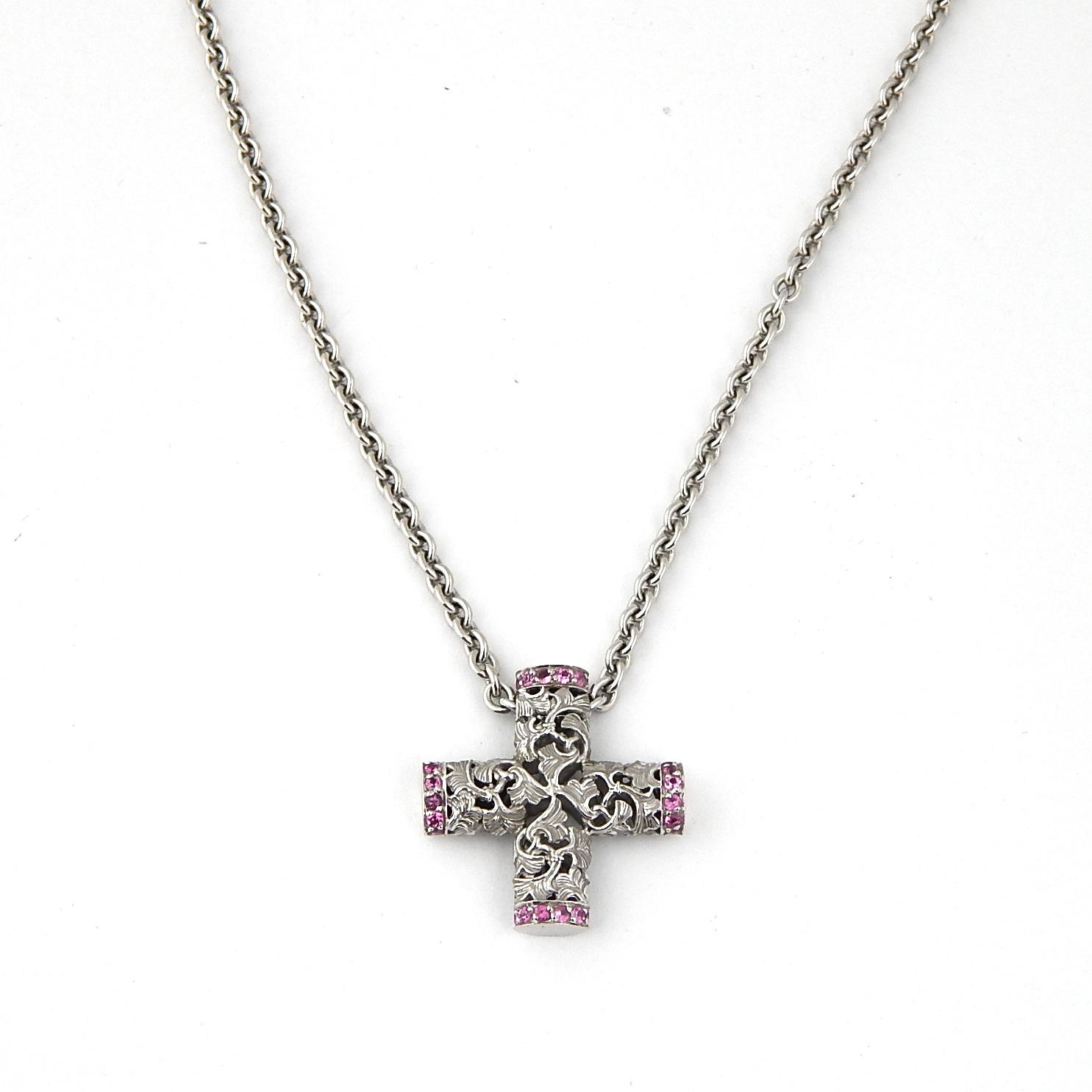 Опис Підвіска-хрестик Carrera y Carrera, біле золото 750, рожеві сапфіри
