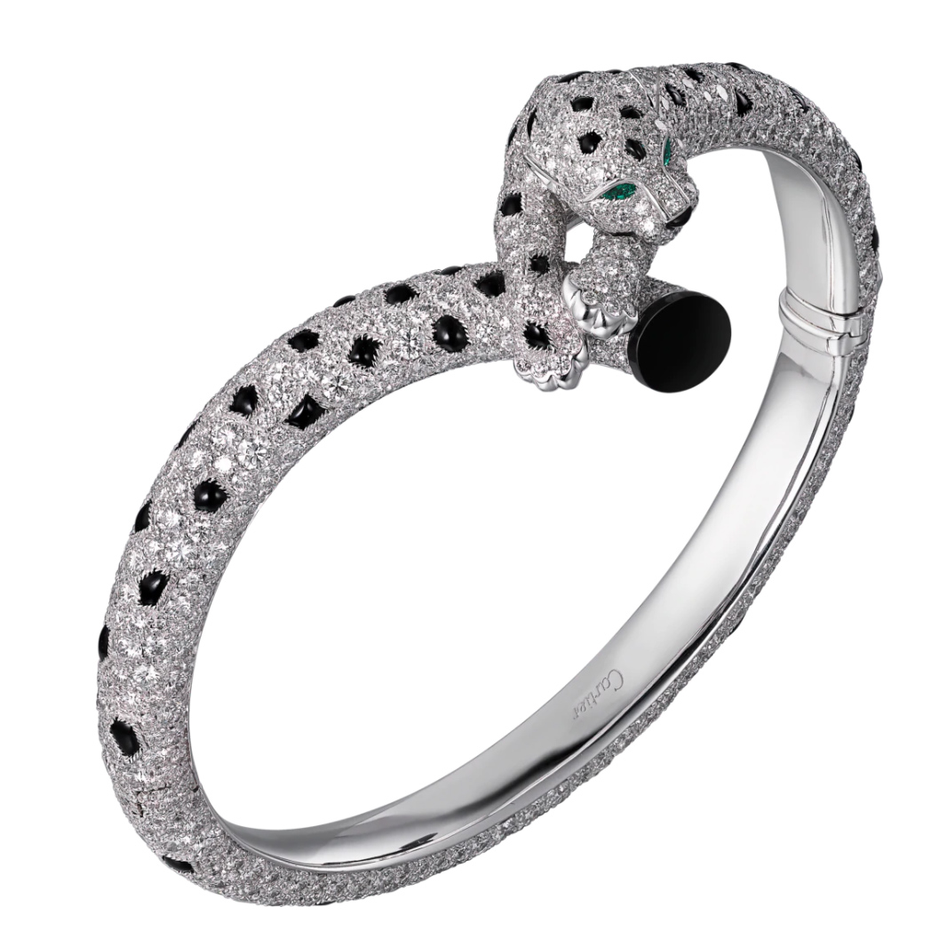 Браслет Panthere de Cartier, біле золото, діаманти, смарагди, онікс