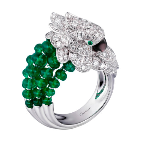 Опис Cartier Les Oiseaux Lib?r?s Parrot ring, white gold, diamonds, emeralds