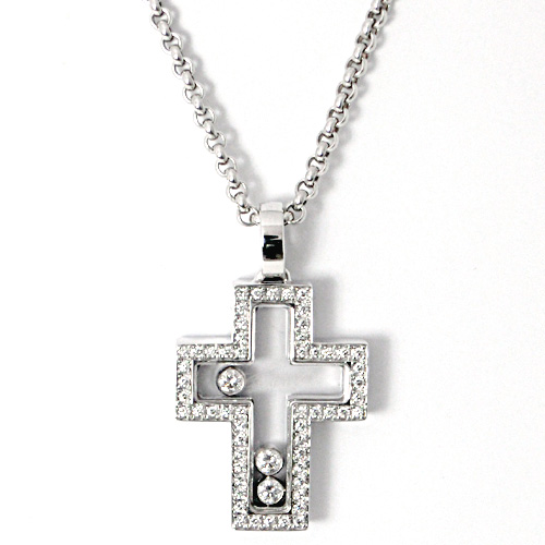 Опис Підвіска-хрестик Chopard Happy Diamonds Біле золото 750, діаманті (56 шт, 0,21 карат), 3 плаваючі діамантіа (0,17 карат) вільно ковзають між сапфіровими стеклами