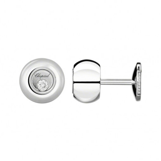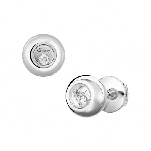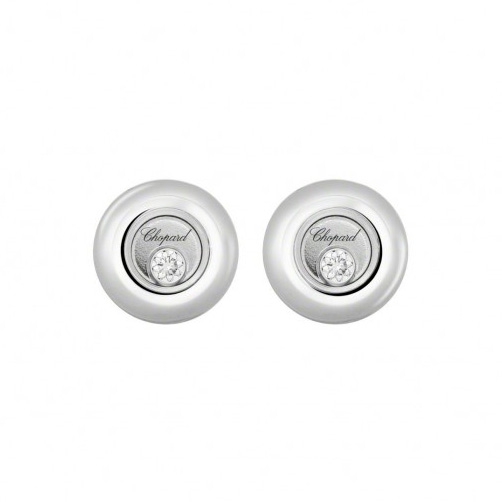 Сережки Chopard Miss Happy ref: 839010-1001 з білого золота 750 проби з діамантами (0,06 карат), діаманти, що плавають вільно ковзають між сапфіровим склом.