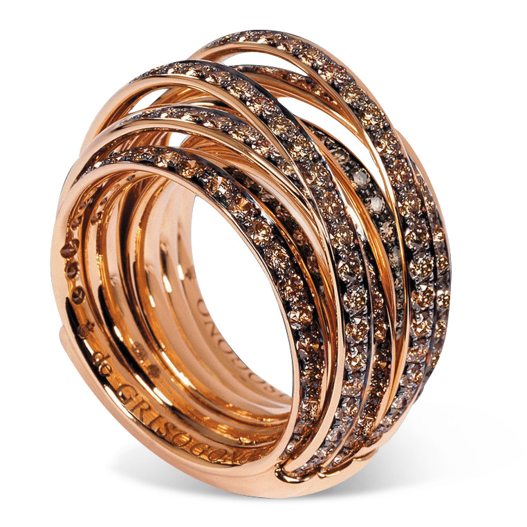 Перстень de Grisogono Allegra, рожеве золото, коньячні діаманти.