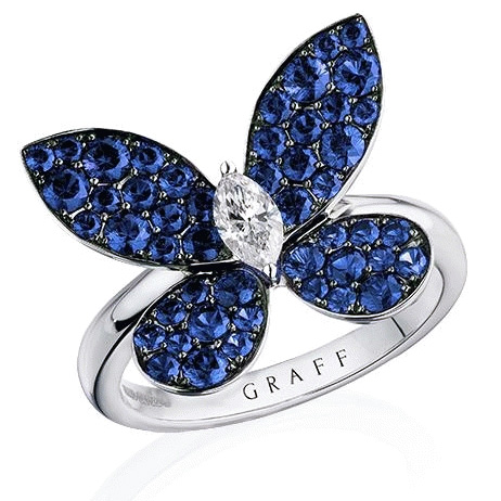 Кільце Graff Butterfly, біле золото, сапфіри, діамант.