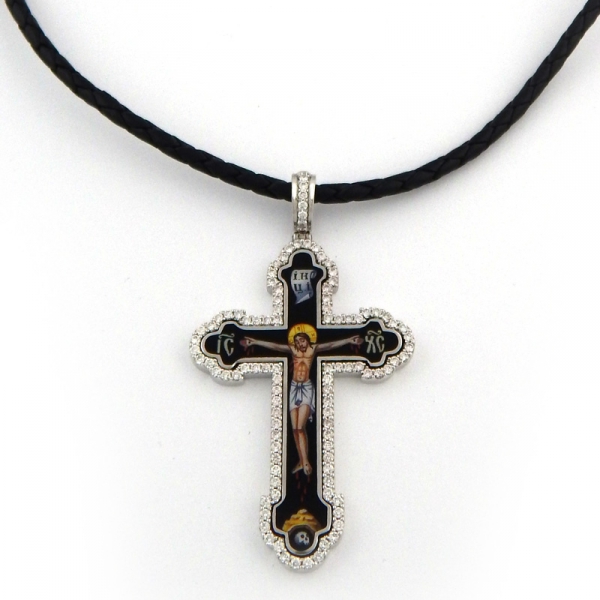 Опис Підвіска-хрестик, біле золото 750 проби, діаманти 1,5ct